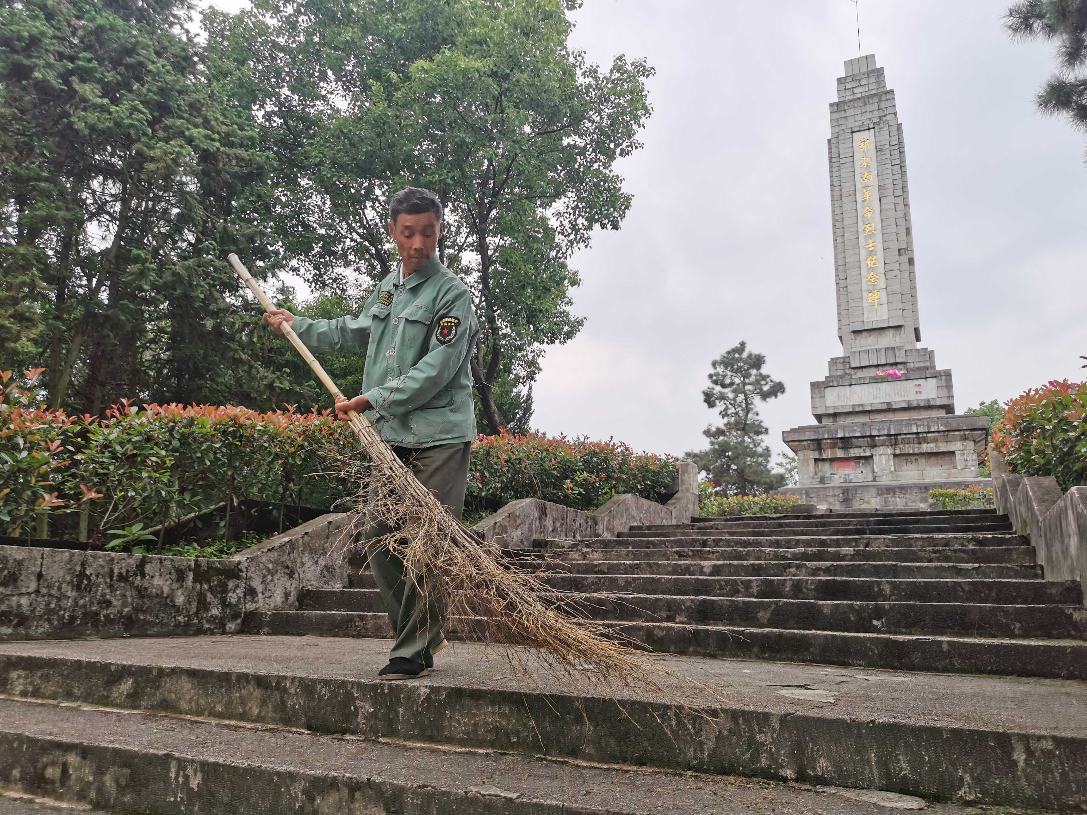 “我要守護好你們。”舒在則在紀念碑前莊嚴承諾。自那以后,舒在則平日出門打工,周末上山打掃陵園。2010年后,舒在則辭了工,從此,無論寒冬臘月還是盛夏酷暑,他幾乎每天都會騎著電動車上山,掃地、割草、栽花、種樹、施肥,有時一忙就是一整天。