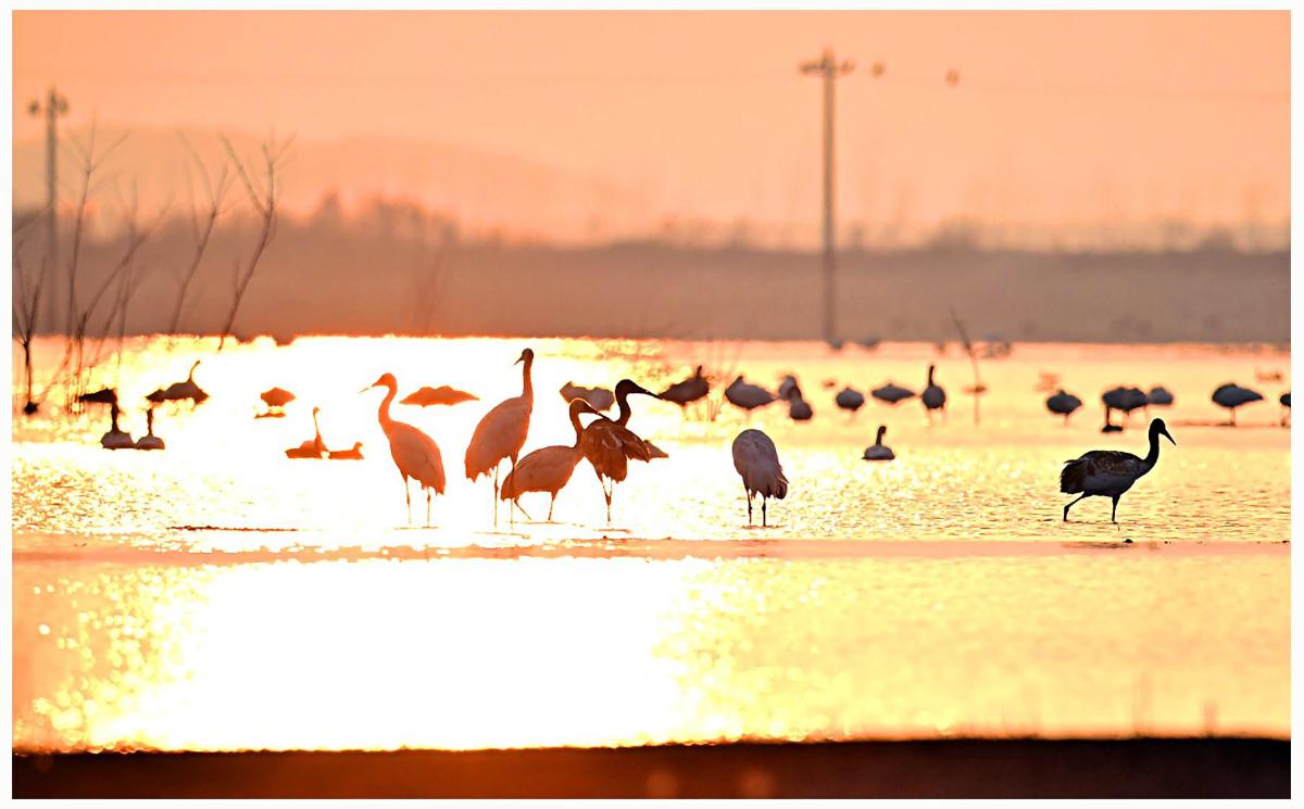 夕陽下的網湖——白鶴歸來