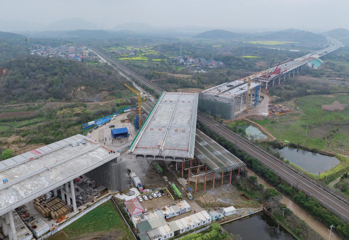 26日14時35分,花湖機場高速公路二期工程迎來關(guān)鍵進展。經(jīng)過75分鐘精密施工,一座重量達2.6萬噸的公路轉(zhuǎn)體橋成功順時針旋轉(zhuǎn)61.1度,跨越了運輸繁忙的武九鐵路。該橋是鄂東地區(qū)目前轉(zhuǎn)體重量最大的橋梁,刷新了區(qū)域記錄。