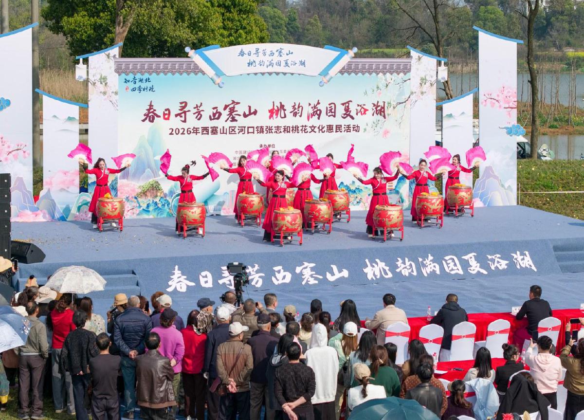 28日,2026年西塞山區(qū)河口鎮(zhèn)張志和桃花文化惠民活動在夏浴湖舉行,文藝展演與灼灼桃花交相輝映,給群眾帶來一場文旅盛會?!↑S石融媒記者 吳山 攝