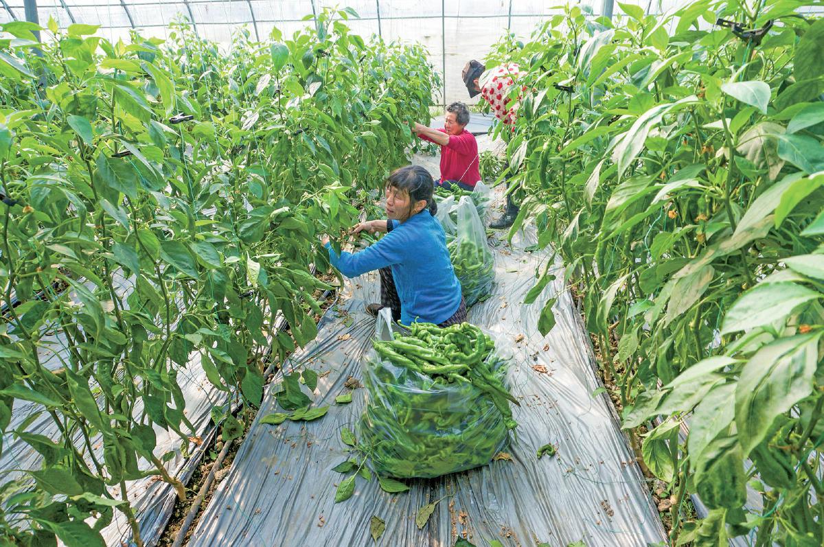 24日上午,在大冶市大箕鋪鎮(zhèn)銀瑞蔬菜大棚里,農(nóng)戶在采摘、搬運(yùn)、分揀,將新鮮的螺絲辣椒采收供應(yīng)市場,豐富群眾“菜籃子”?!⊥ㄓ崋T 瞿澤敏 攝