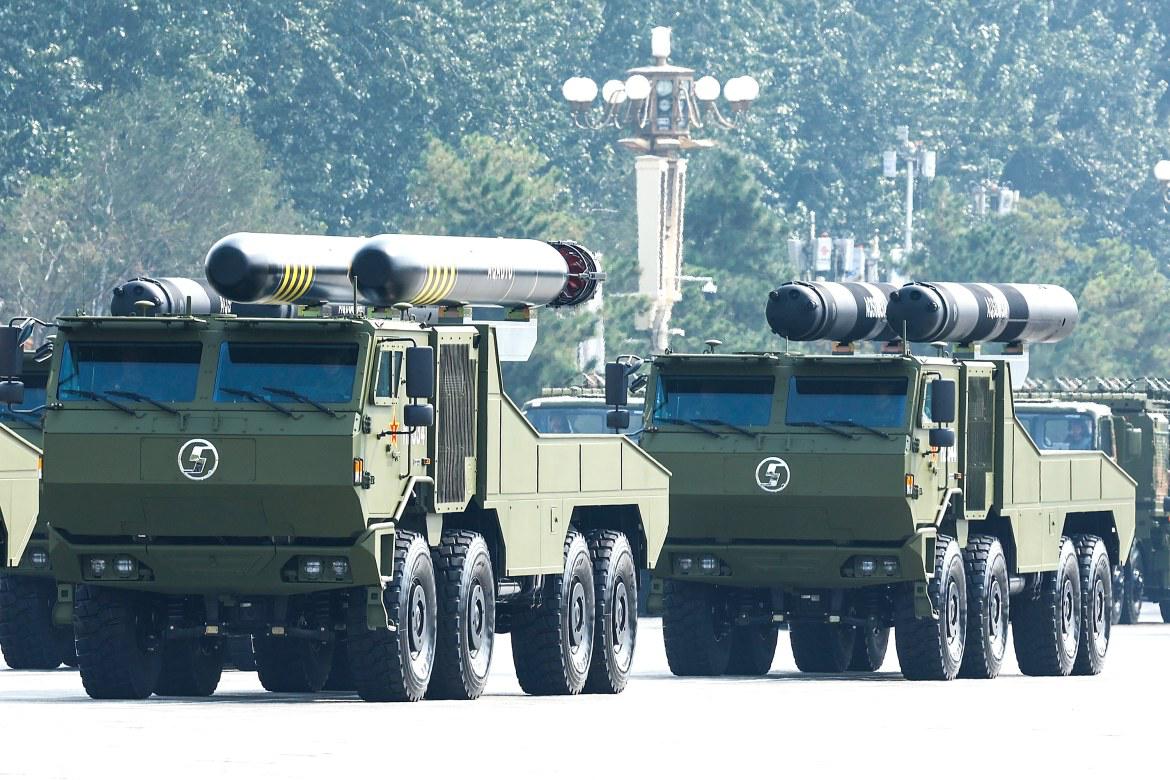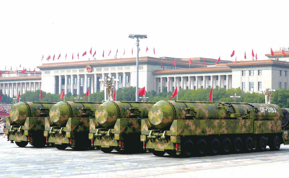 核導(dǎo)彈第一方隊(duì):受閱的“驚雷-1”空基遠(yuǎn)程導(dǎo)彈、“巨浪-3”潛射洲際導(dǎo)彈、“東風(fēng)-61”陸基洲際導(dǎo)彈、“東風(fēng)-31”新型陸基洲際導(dǎo)彈,首次集中展示我軍陸、海、空基“三位一體”戰(zhàn)略核力量。