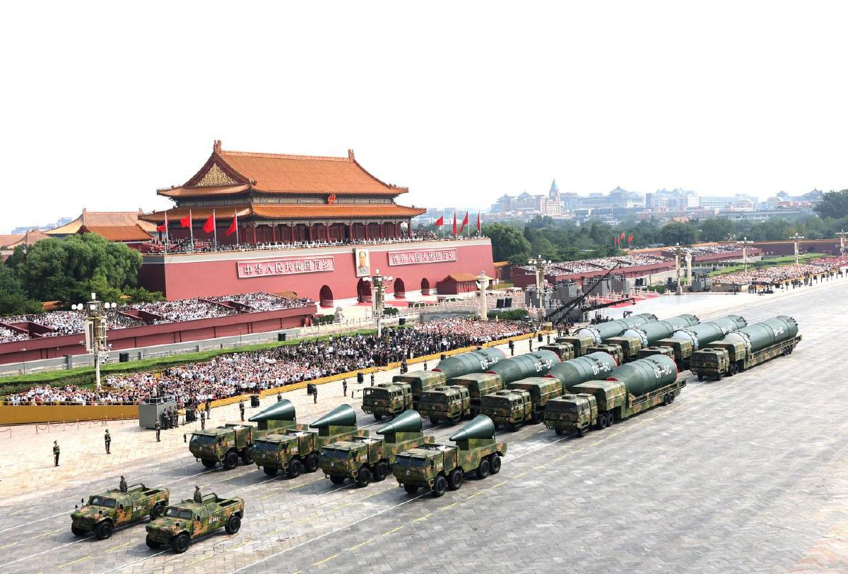 核導(dǎo)彈第二方隊(duì):“東風(fēng)-5C”液體洲際戰(zhàn)略核導(dǎo)彈亮相。“東風(fēng)-5C”液體洲際戰(zhàn)略核導(dǎo)彈是我國戰(zhàn)略反擊體系中的重要組成,打擊范圍覆蓋全球,全時(shí)戒備、有效威懾,以武止戈、砥定乾坤。