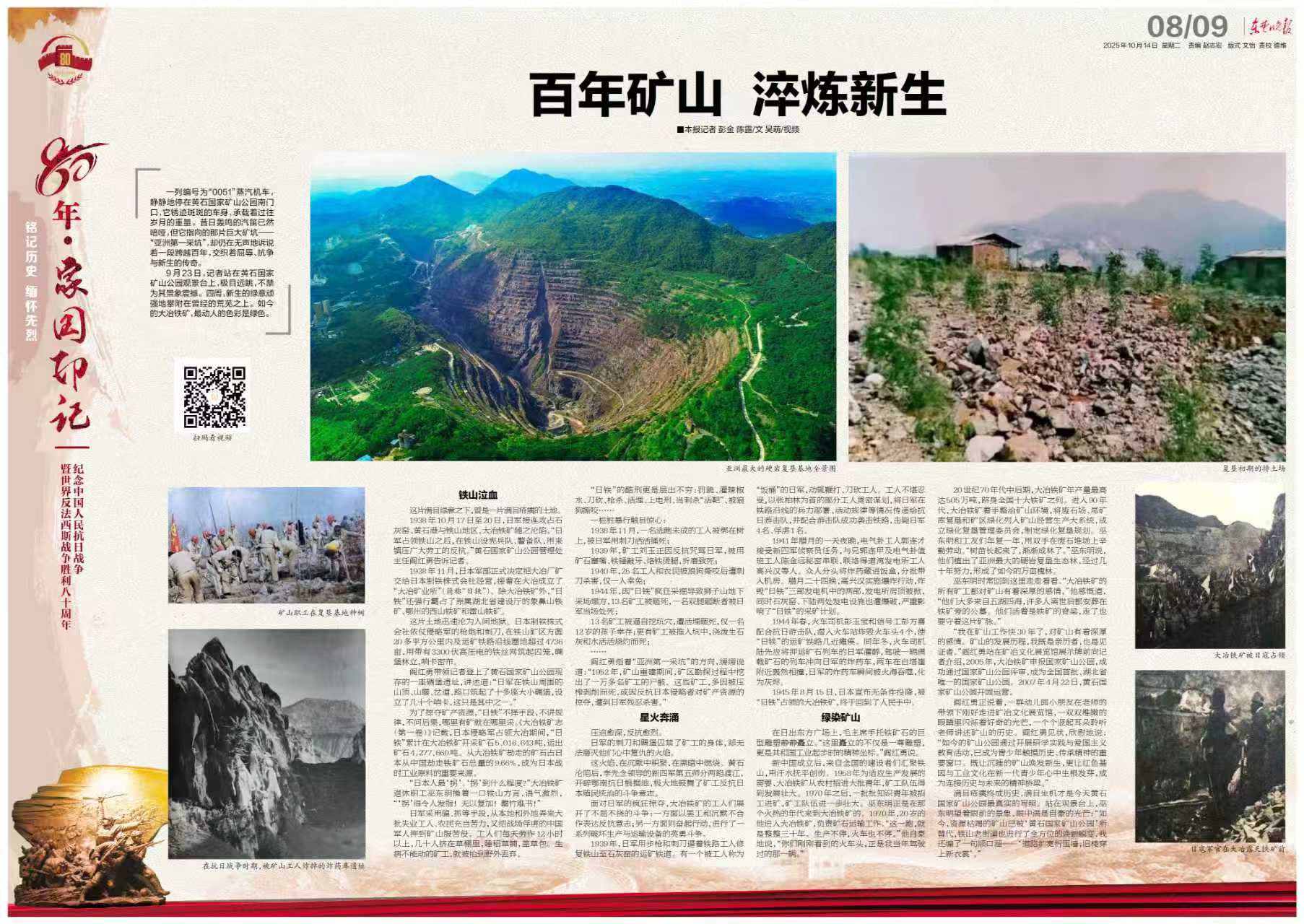 閻紅勇指著“亞洲第一采坑”的方向,緩緩說道:“1952年,礦山重建期間,礦區(qū)勘探過程中挖出了一萬多名礦工的尸骸。這些礦工,多因被壓榨剝削而死,或因反抗日本侵略者對礦產(chǎn)資源的掠奪,遭到日軍殘忍殺害?!?/p>