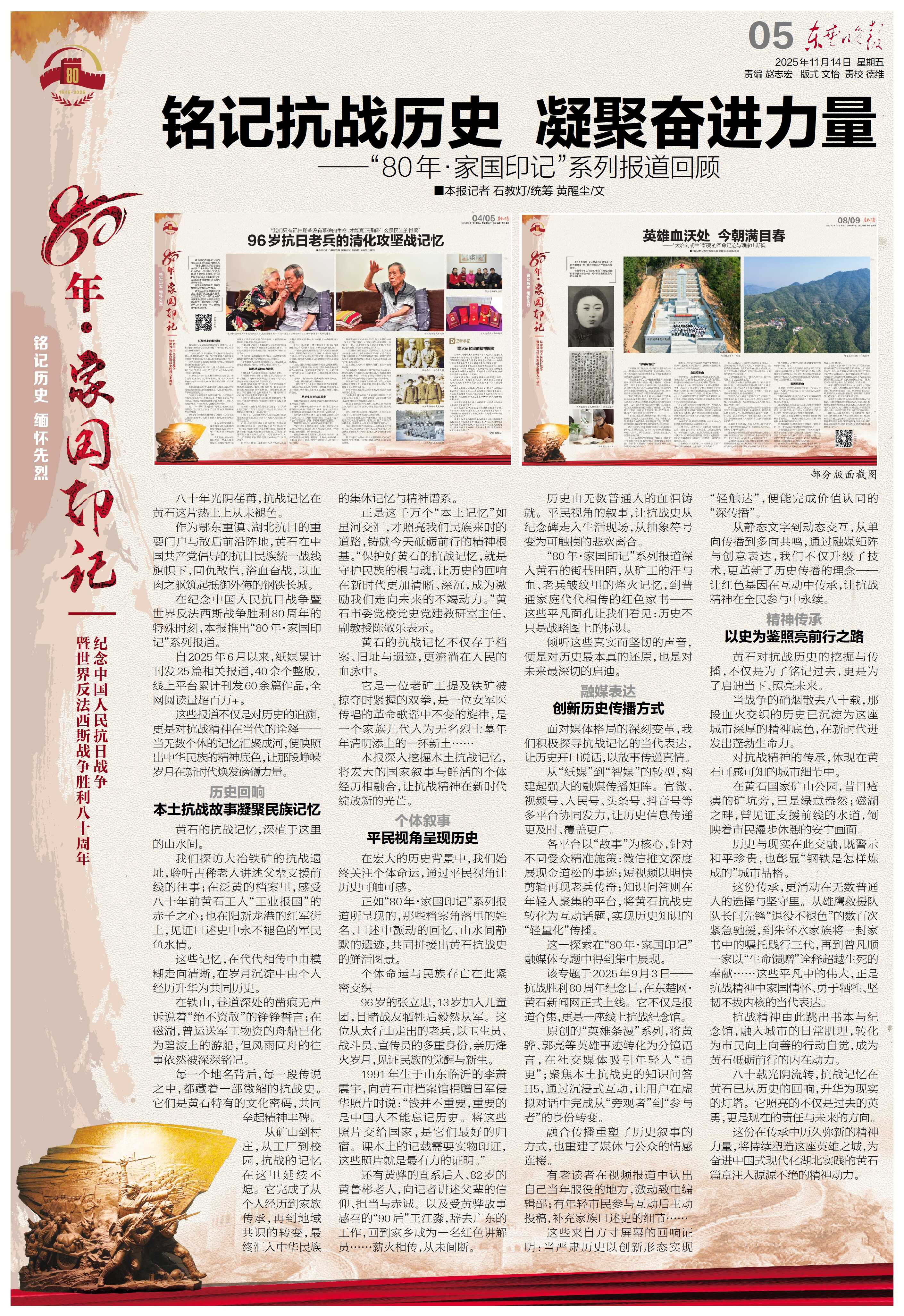 該專題于2025年9月3日——抗戰(zhàn)勝利80周年紀念日,在東楚網(wǎng)·黃石新聞網(wǎng)正式上線。它不僅是報道合集,更是一座線上抗戰(zhàn)紀念館。
