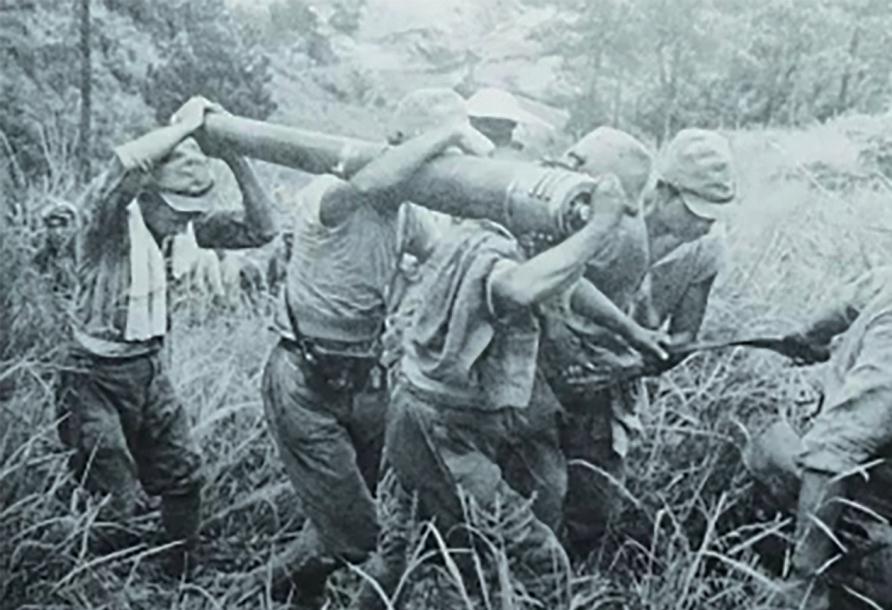 1938年9月15日,陽(yáng)新富水河一帶,搬運(yùn)重武器的侵華日軍小堀部隊(duì)士兵。