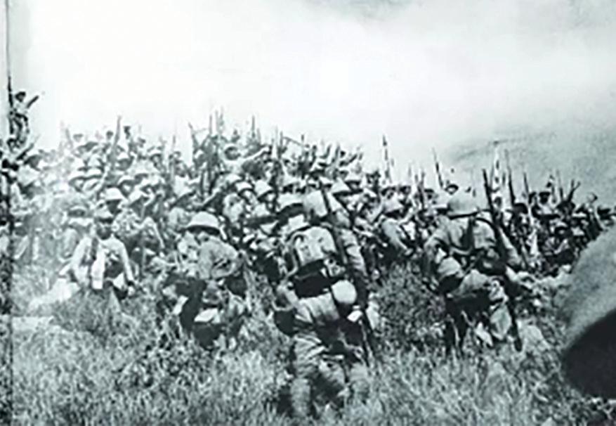 1938年9月26日,侵入富水河以東地區(qū)的日軍飛機(jī)和地面部隊(duì)。
