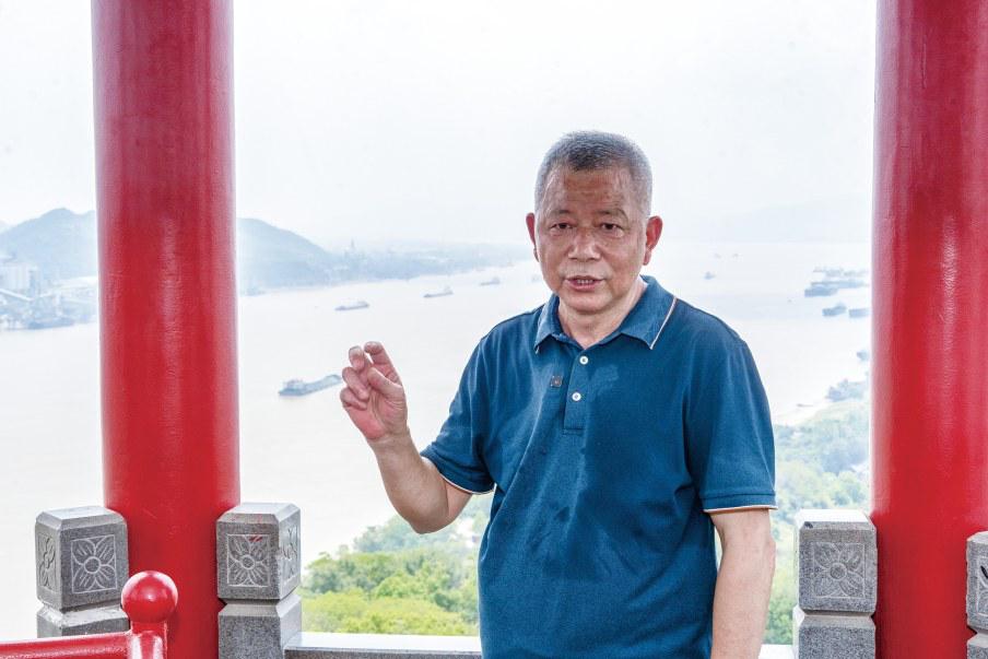 登半壁山遠(yuǎn)眺,長江煙波浩渺,航道船舶來往不斷