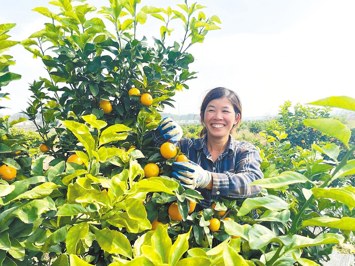 任甚紅在基地采摘砂糖橘。