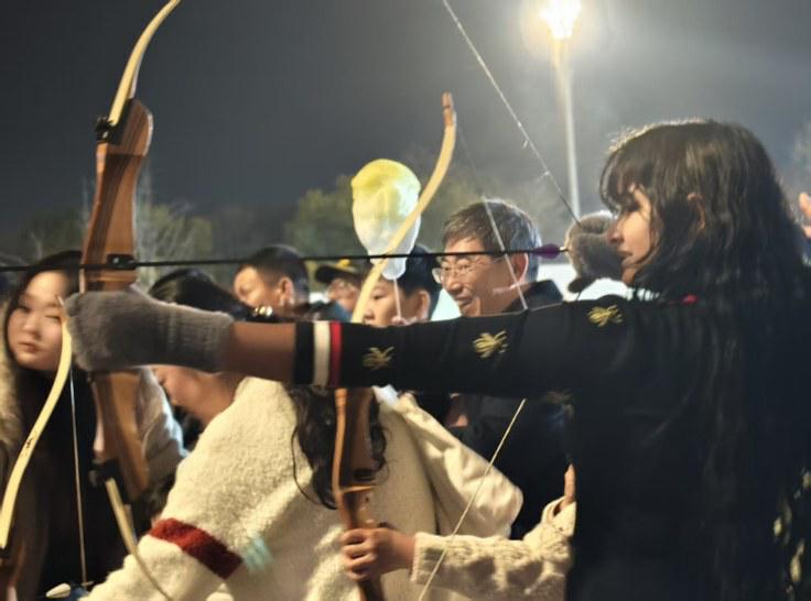 繼續(xù)往前走,射箭體驗(yàn)區(qū)傳來(lái)陣陣歡呼。方月迫不及待地嘗試,在工作人員的幫助下,她反復(fù)嘗試,終于射出一箭,穩(wěn)穩(wěn)扎在靶子上。雖然不是十環(huán),她卻興奮得跳了起來(lái),轉(zhuǎn)身沖吳迪喊:“你看!我射中了!”